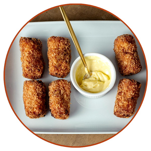 Nuestras croquetas, hechas a mano, siempre cremosas por dentro y perfectas para compartir… o no.